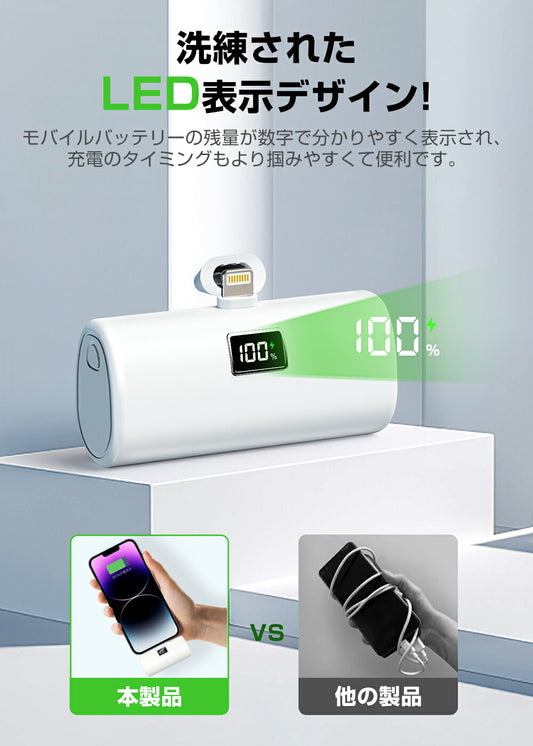 【業界革新モデル MFi認証品】★type-c対応型新登場★小型モバイルバッテリー 数字で残量がわかる ポータブル充電器 挿すだけ充電 最大2.1A出力 iPhone Android全機種対応 12ヶ月延長保証 【一目で残量がわかる】モバイルバッテリー Android 軽量 小型 MFi正規認証品 5000mAh 直接充電 Lightning/Type-cコネクター内蔵 PD10.5W急速充電 残量表示 iPhone15/14/13/12/11/8/SE/Pro/iPad全機種対応 PSE認証済