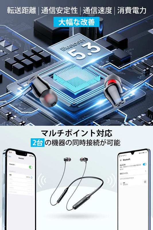 次世代ネックバンド型 イヤホンイヤホン Bluetooth5.3 Bluetooth 首掛け イヤホン ネックバンド ワイヤレスイヤホン 首掛け イヤホン スポーツ防水 IPX7防水