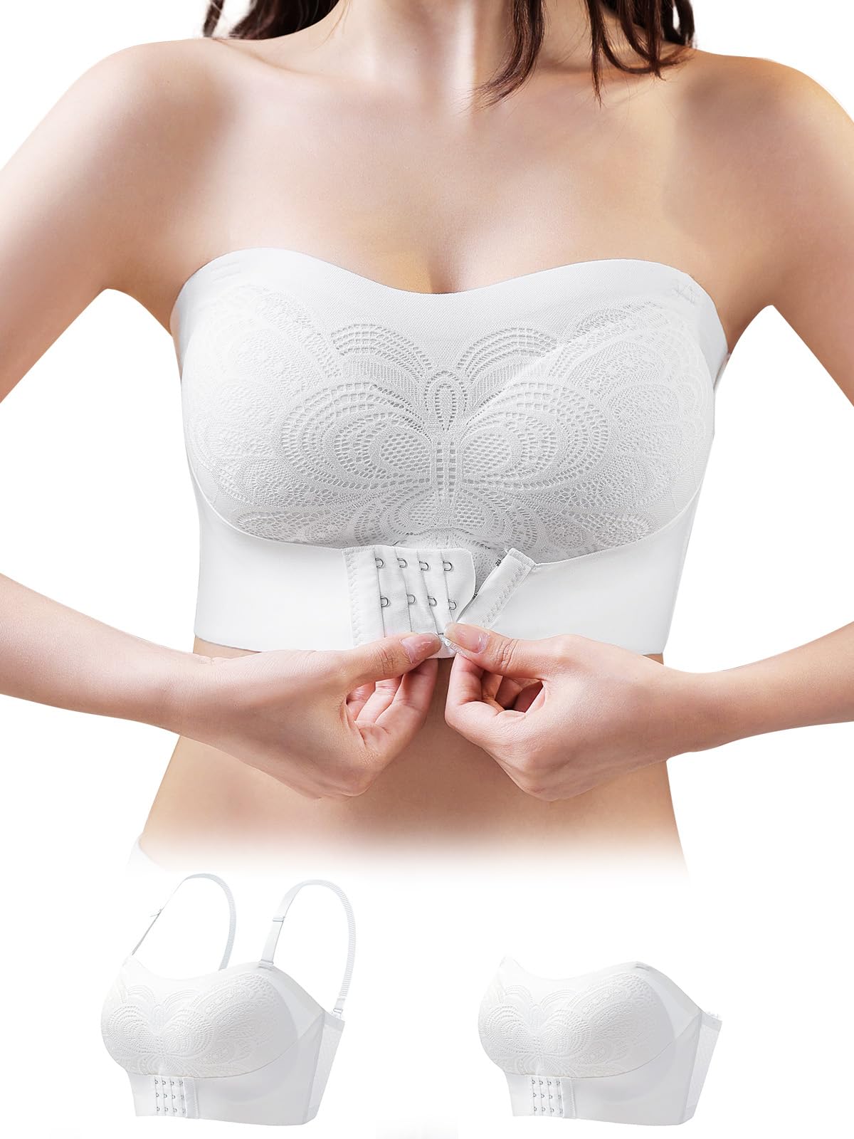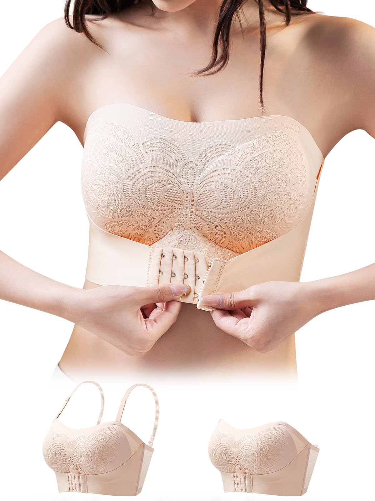 - 【「ストラップレスブラ 落ちない」設計】:このノンワイヤーブラは滑り止めコーティング加工で、ワイドカップとたっぷりパッドによりしっかり固定。さらに腰部分の内側にはゴム素材を使用し、抜群の滑り止め効果!フロントフックで胸を包み込む「寄せブラ」構造のため、上からの揺れも防ぎ、横から見たシルエットを美しく整えます。特に「ストラップレスブラ 大きいサイズ」対応で、ふくよかな体型の方にもフィット。