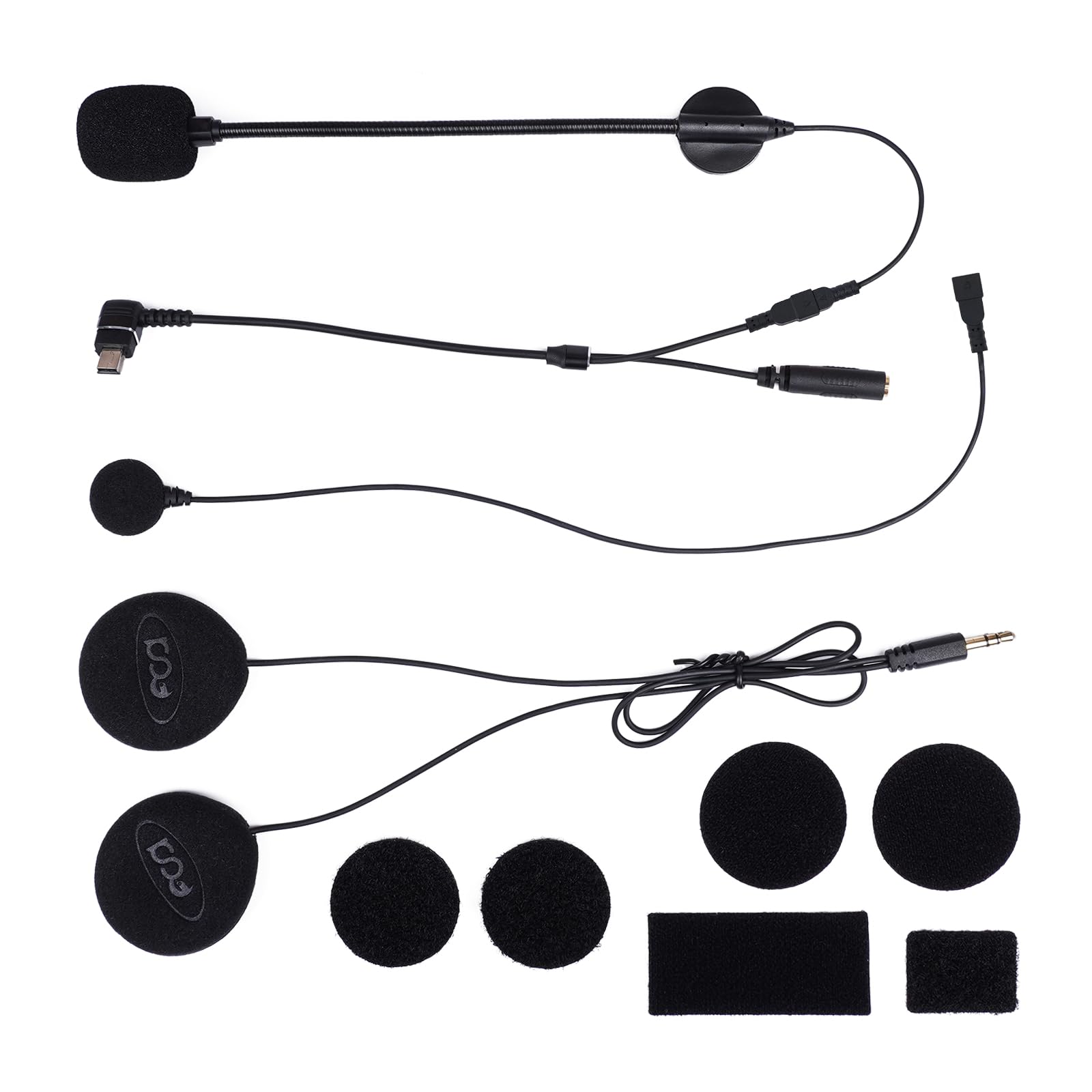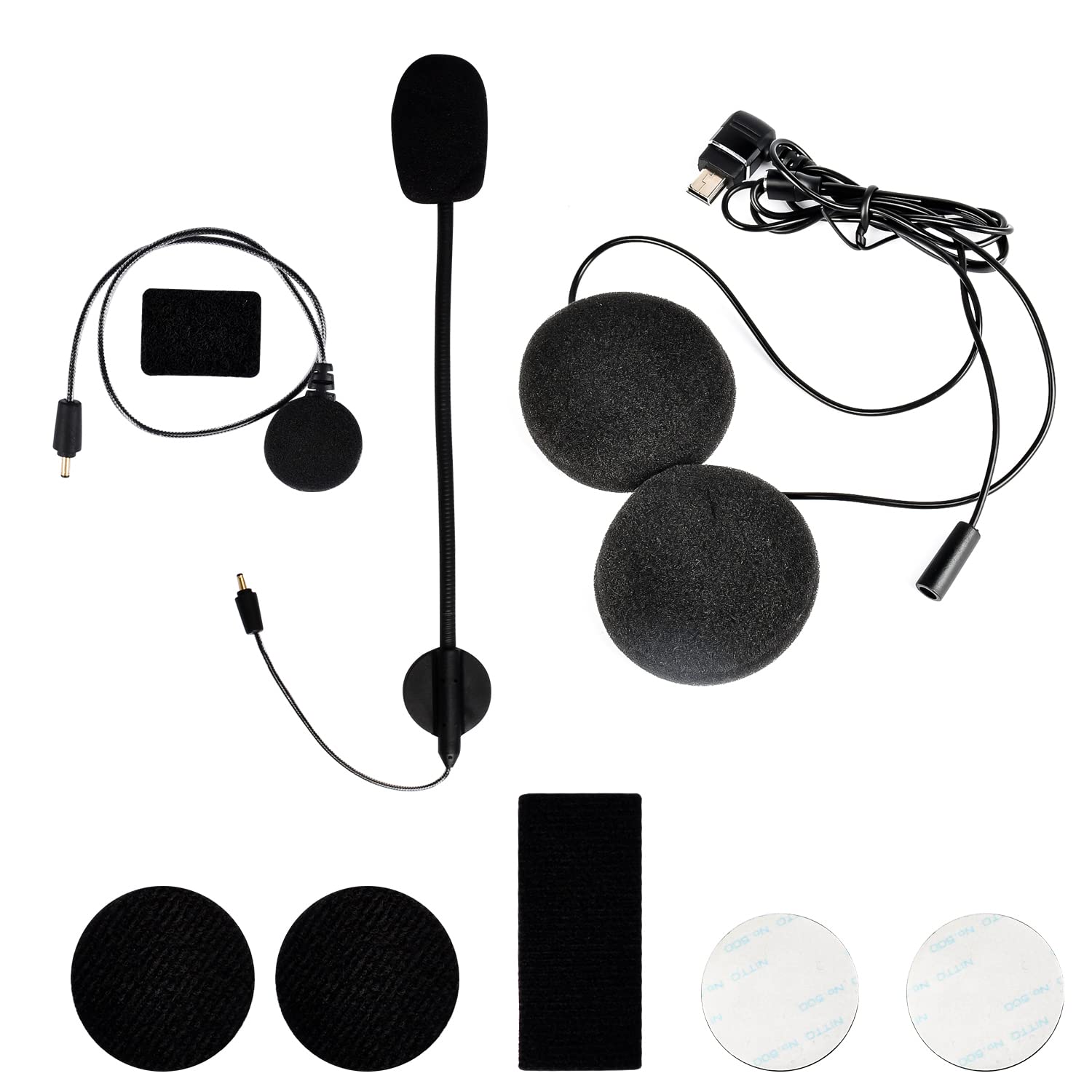 バイク用インカム M1-S Pro専用 ヘッドセット USB Mini-B端子 オプション品 強化HI-FI音質 ヘルメット用イヤホン 二種類マイク&スピーカー マジックテープ同封