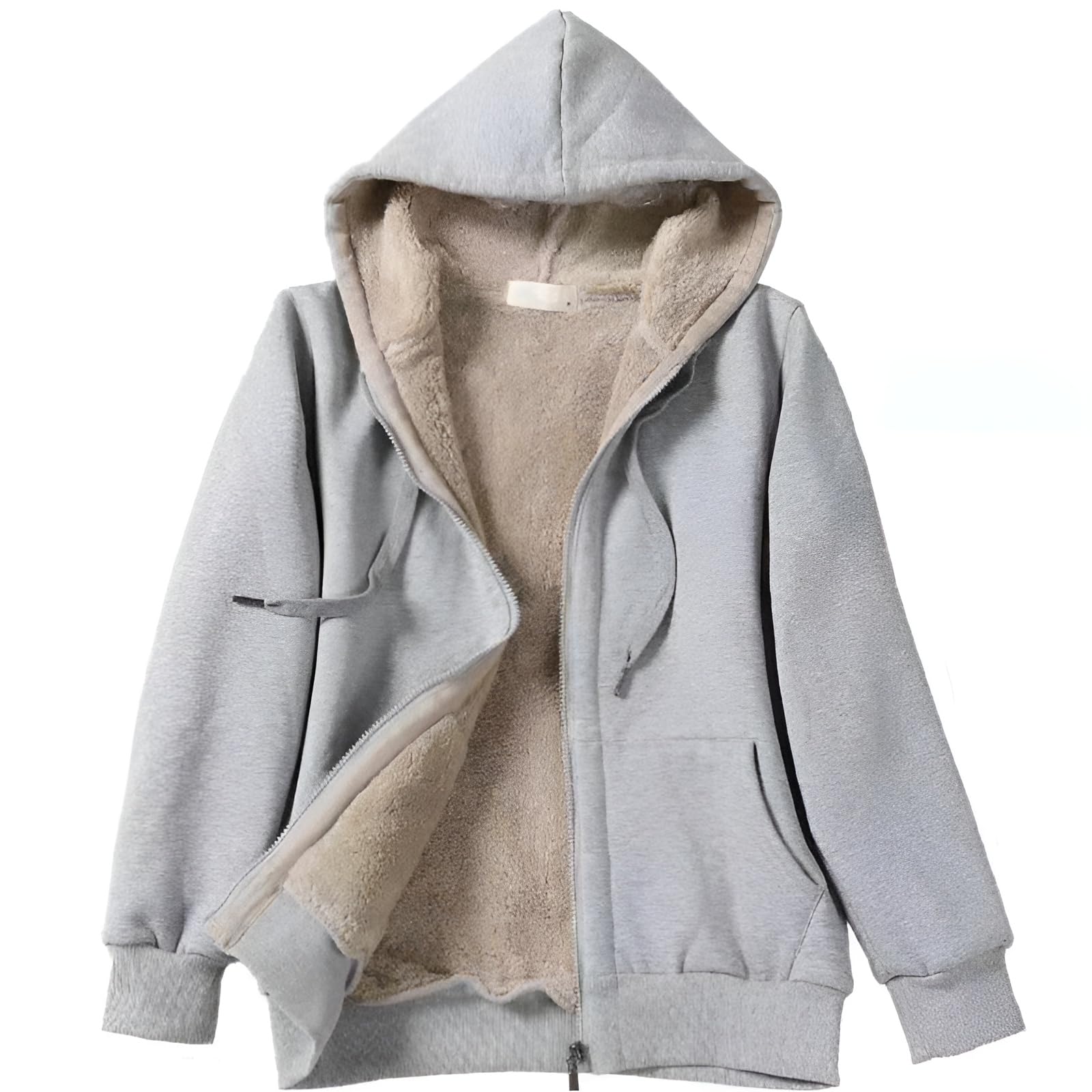 レディースボアパーカー ルーズフィット 厚手裏起毛 前開きフード付き 3シーズン対応