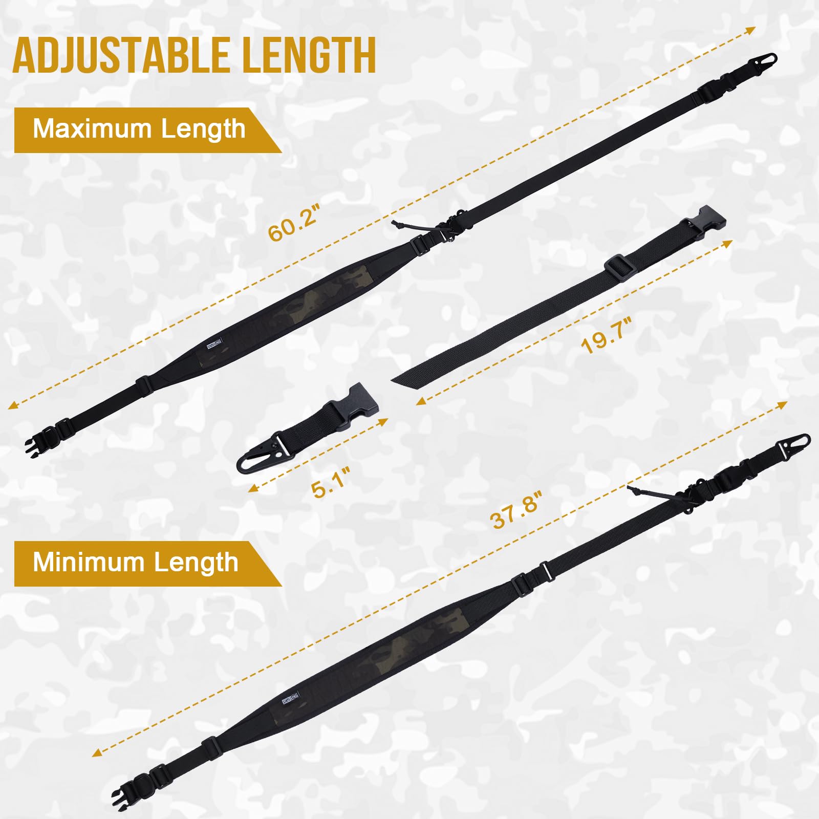 2点式スリング サバゲー スリング・ストラップ 1インチ幅キャリング・ストラップ 交換可能なHKスタイル・スナップ・フック付き 56インチから70インチまで長さ調節可能