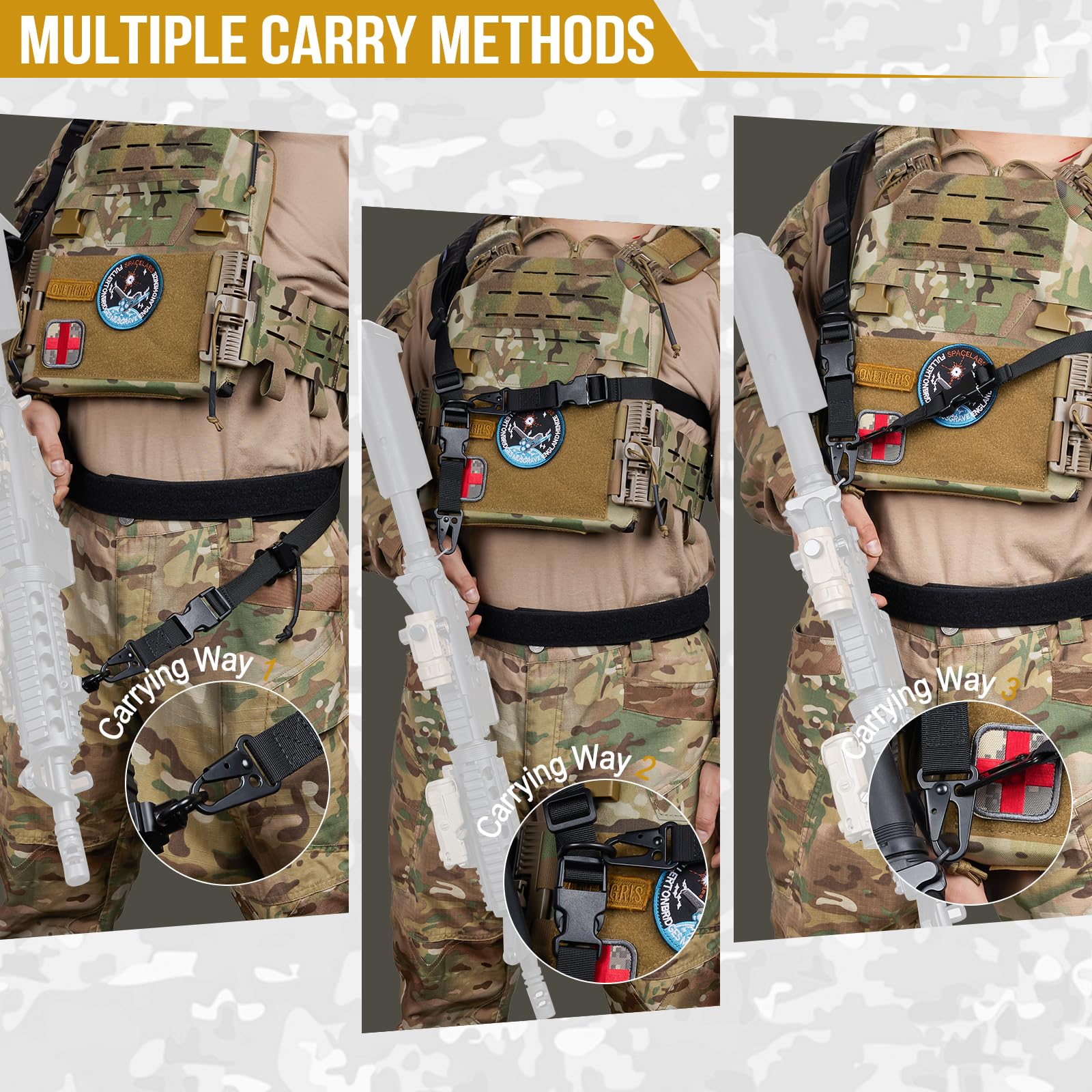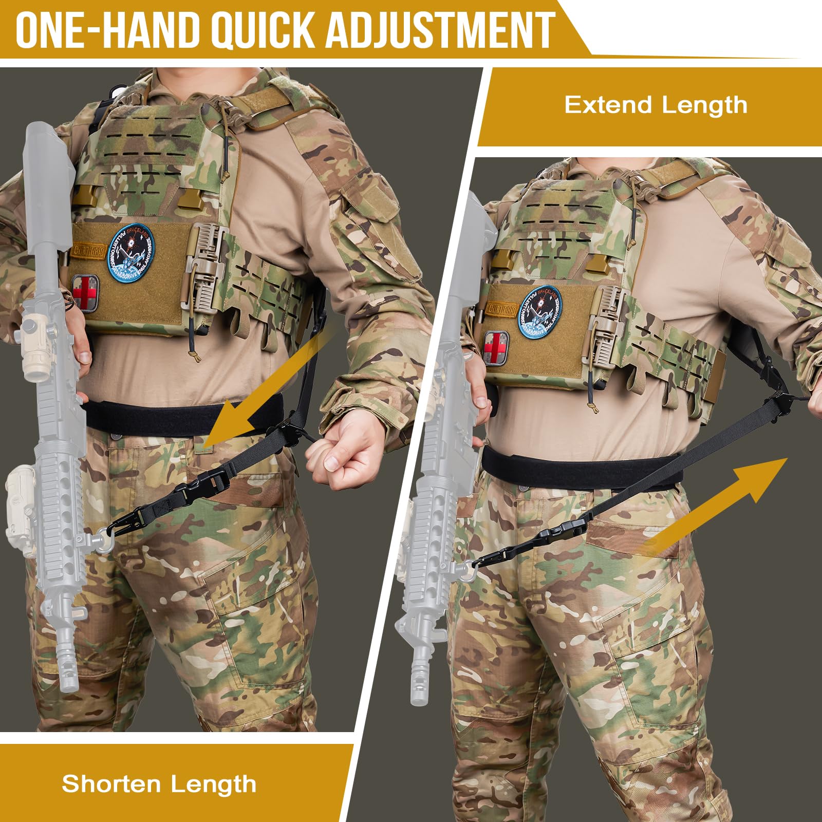 • 【エアソフト・ライフル用スリング】EVAパッド入りのショルダースリングは最高の快適さを提供し、付属のアクセサリーを介して2点スリングを1点スリングに変換することができます。