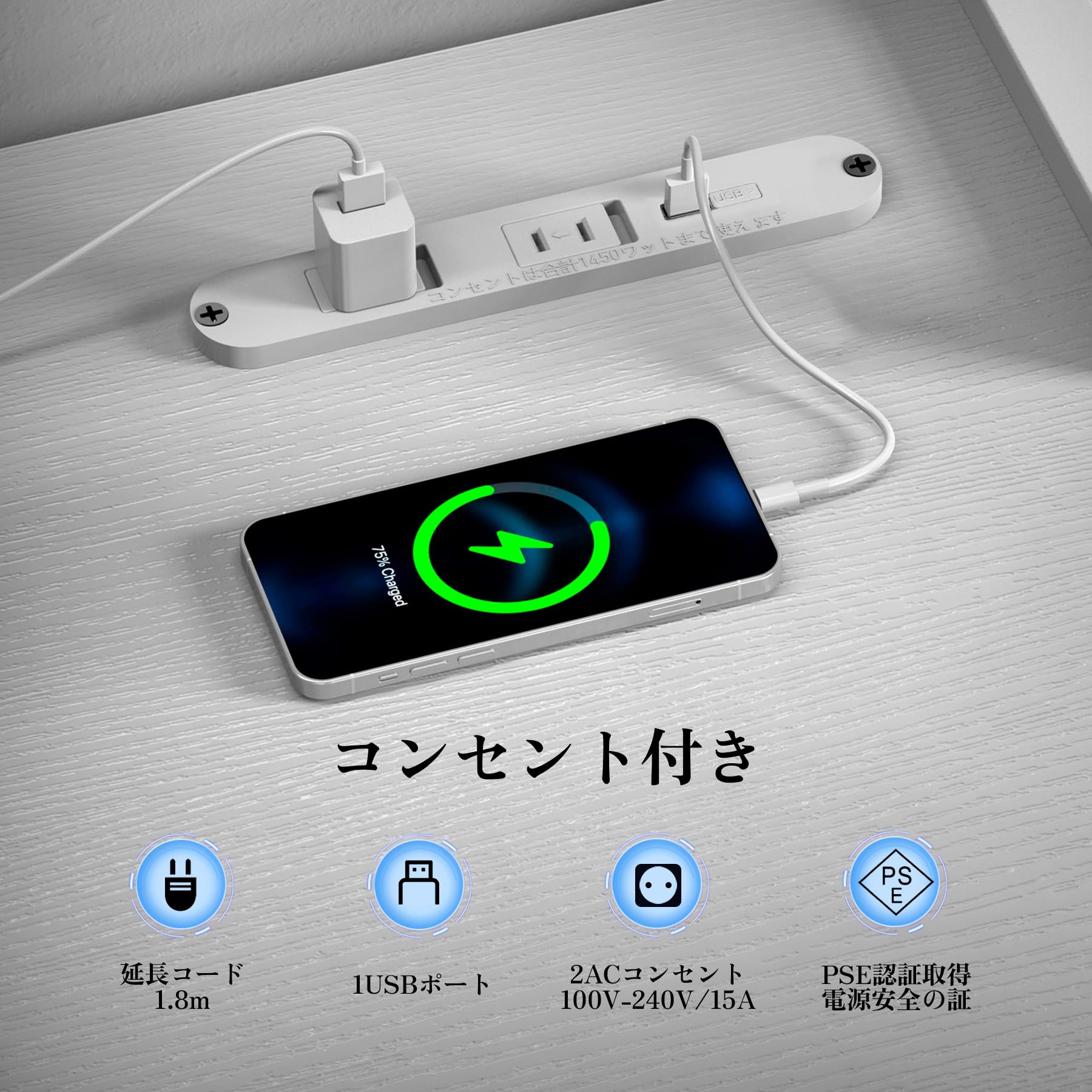 - 【内蔵電源コンセント】パソコンデスクの上にはACコンセント2口とUSB充電ポート1口が搭載され、電源供給に便利のともに、配線もスッキリとまとめられ、より快適な感じをもたらします。